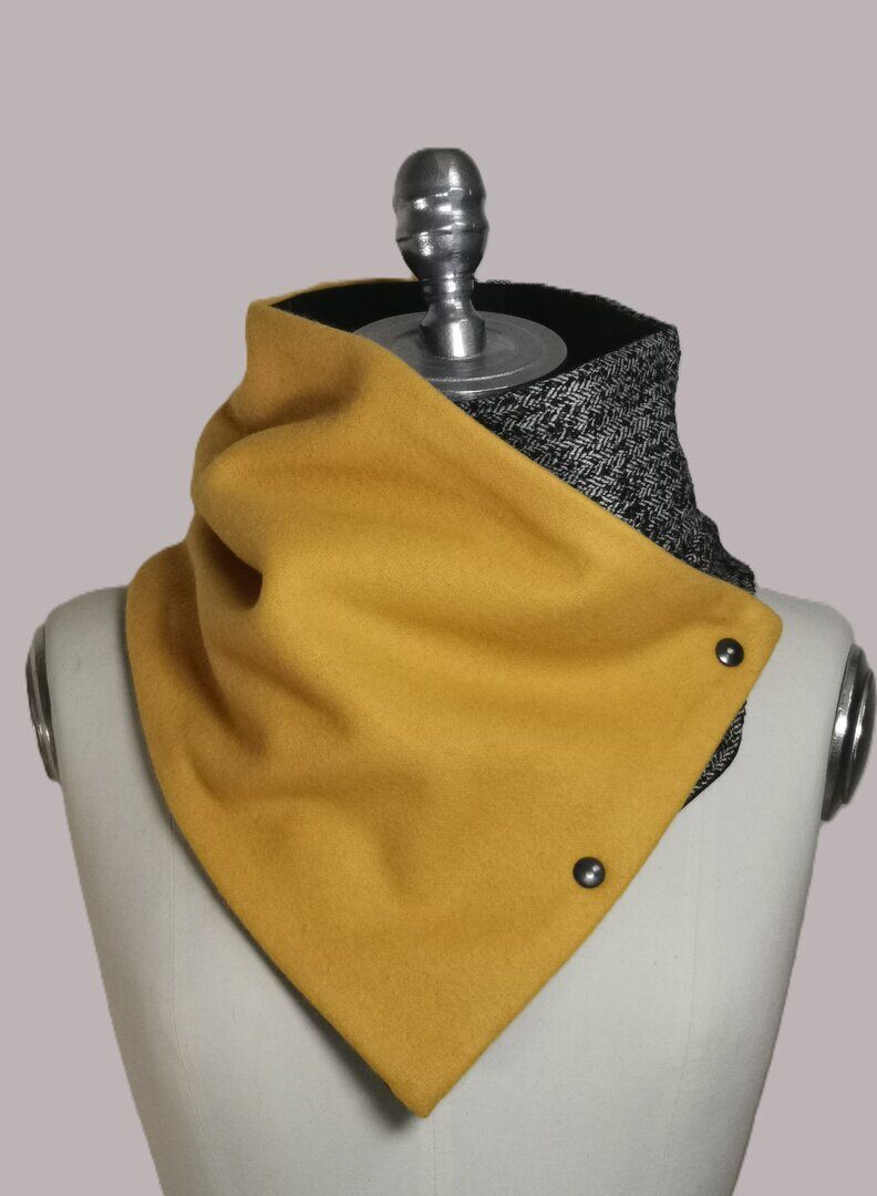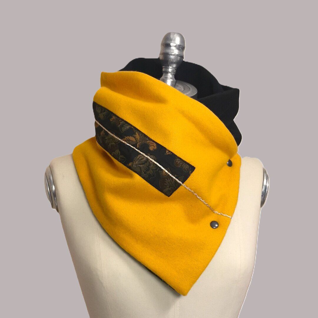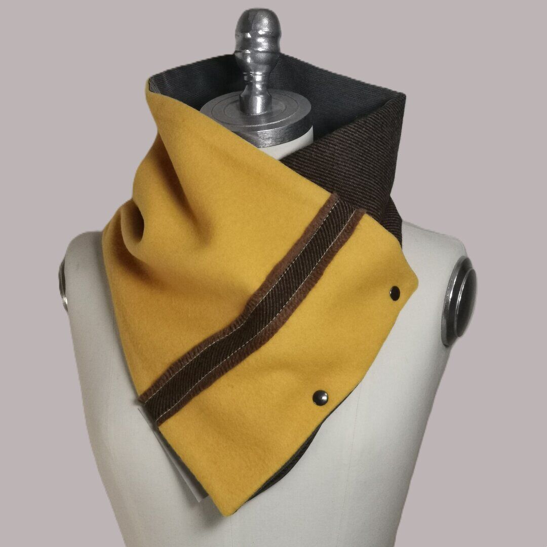 Kollo Urban 100% Lana leggera Grigio fumo, con inserto in seta Giallo oro